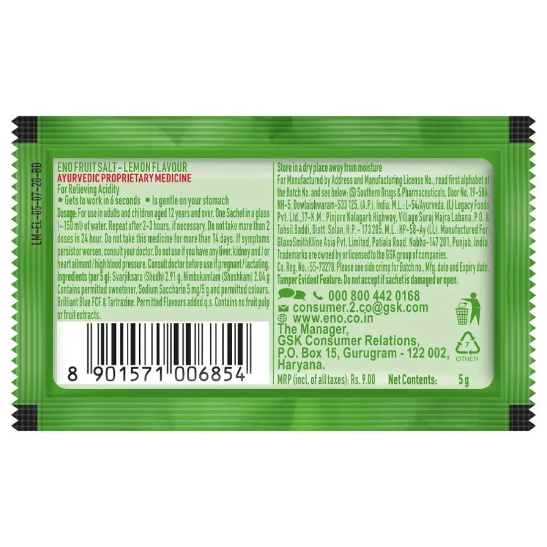 Eno Lemon is a fast-acting antacid that provides quick relief from acidity, heartburn, and indigestion. With its refreshing lemon flavor, it neutralizes excess stomach acid within seconds, helping you feel light and comfortable after meals.