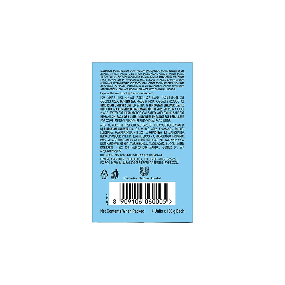Lux International Soap combines gentle cleansing with a rich, luxurious lather and a long-lasting fragrance. Enriched with moisturizing ingredients, it leaves your skin soft, smooth, and delicately perfumed, making every bath a refreshing experience.