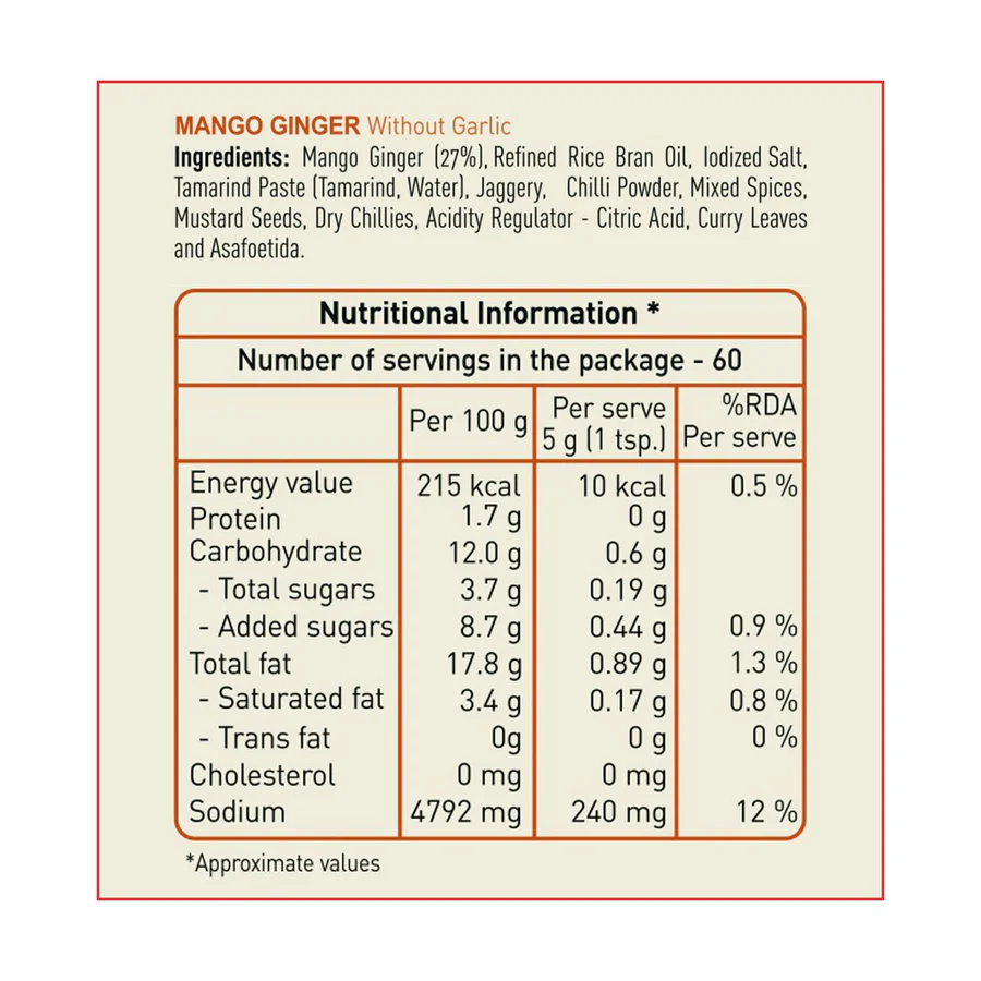 Mango Ginger, Edible Vegetable Oil, Salt, Spices, and Preservatives