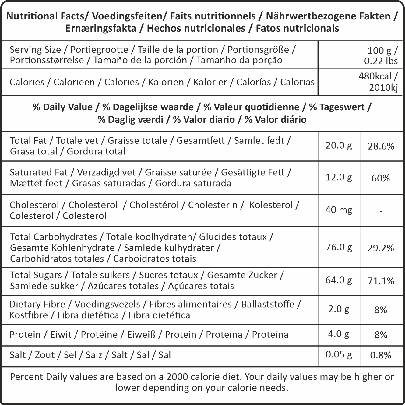 Sugar, chickpea flour, edible vegetable oil (sunflower oil), water, saffron