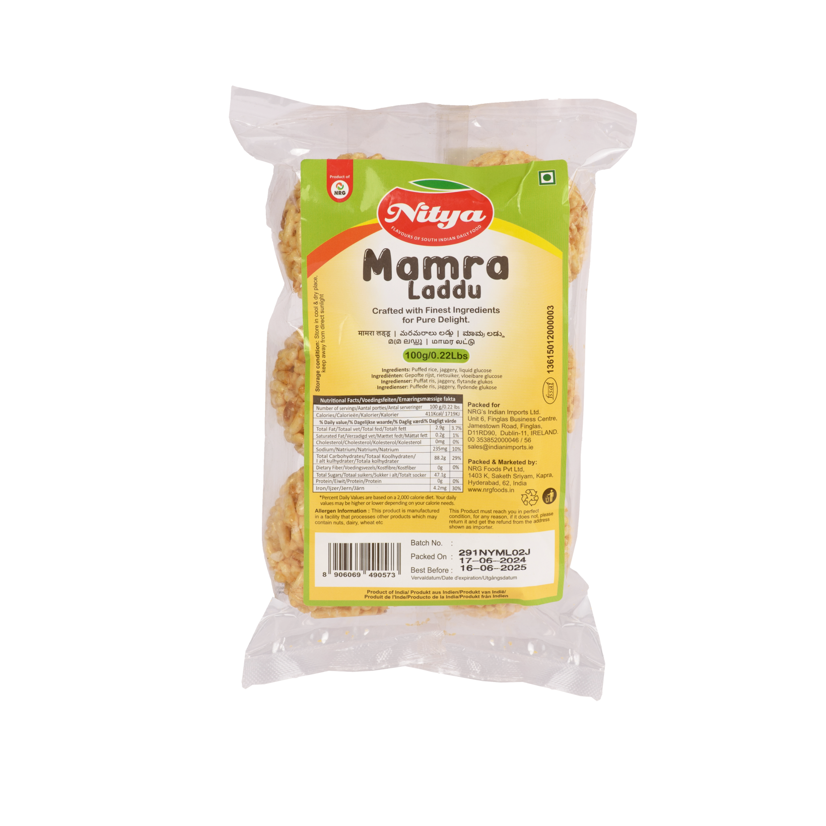 Mamra Laddu is a traditional Indian sweet made with puffed rice (mamra) and natural jaggery. Light, crunchy, and packed with energy, it’s a wholesome snack enjoyed by all age groups. Perfect for retail shelves, festive gifting, and everyday snacking.