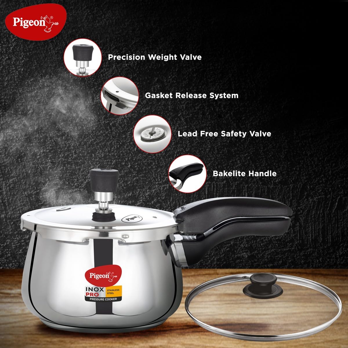 Pigeon Inox Stainless Steel Cooker is a durable, high-quality pressure cooker designed for safe and efficient cooking. Made with premium stainless steel, it ensures even heat distribution, energy savings, and long-lasting performance. Ideal for everyday cooking of rice, lentils, vegetables, and other meals.