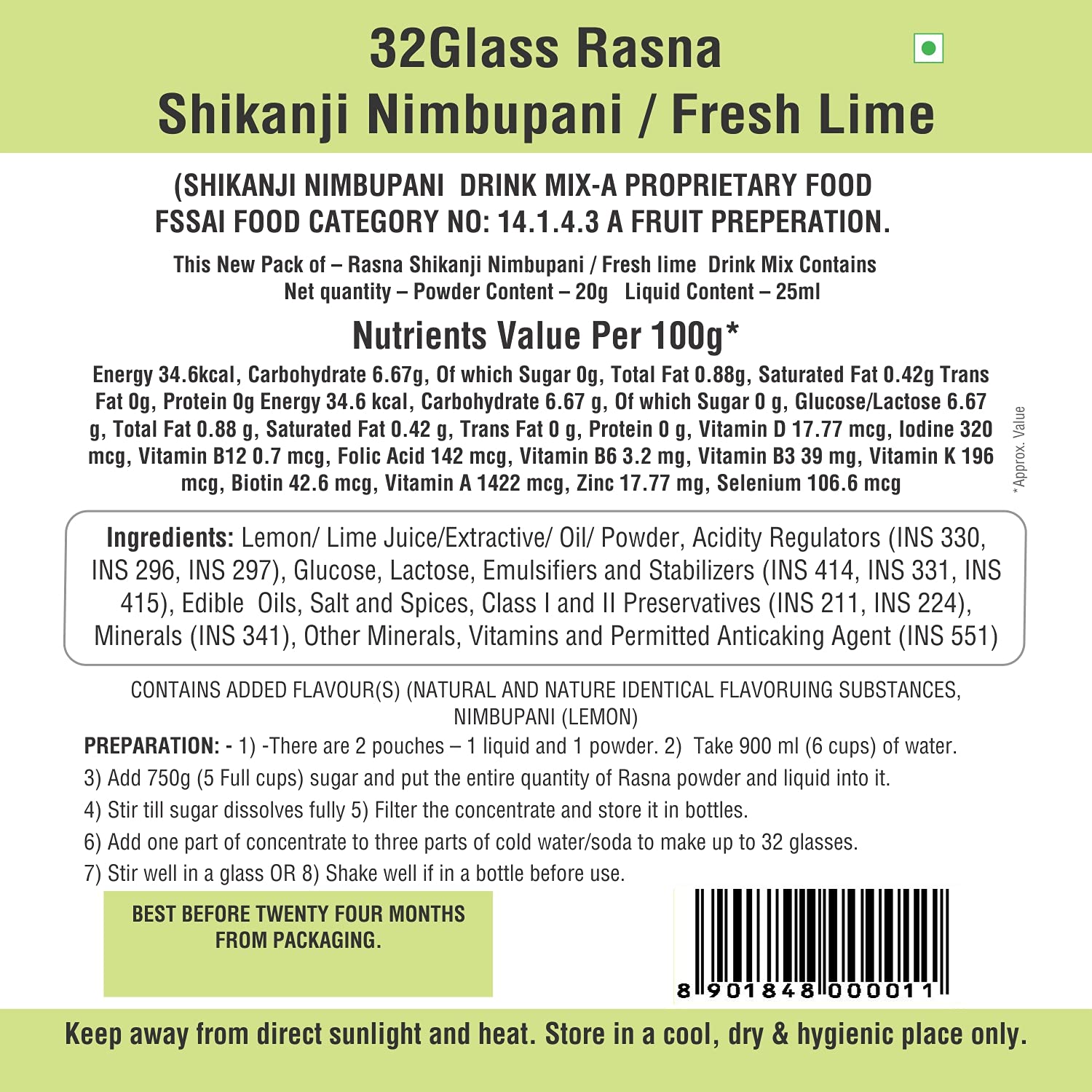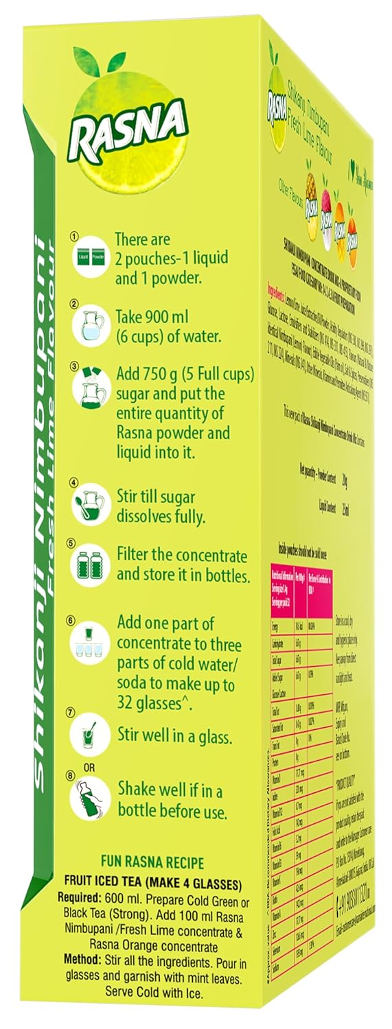Usage:Mix the recommended quantity of Rasna powder with cold water as per pack directions. Stir well and serve chilled.