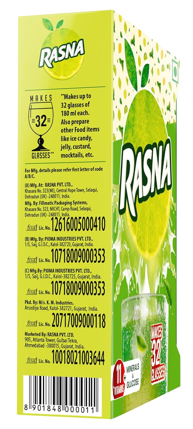 Usage:Mix the recommended quantity of Rasna powder with cold water as per pack directions. Stir well and serve chilled.