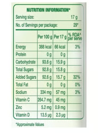 Sugar, Acidity Regulators (Citric Acid, Malic Acid), Lemon Fruit Powder, Salt, Vitamins, and Natural & Artificial Flavors